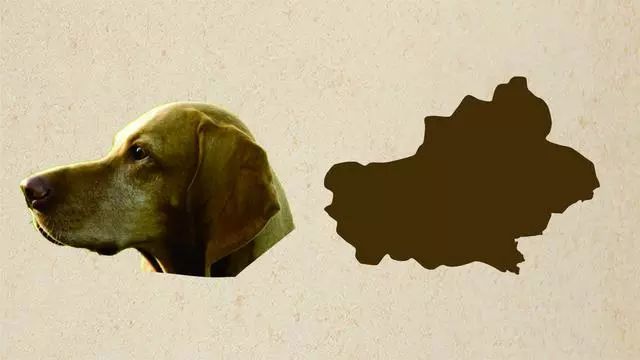 新疆形状上像一只狗的头部,嘴鼻子的部分还是挺像的吧。