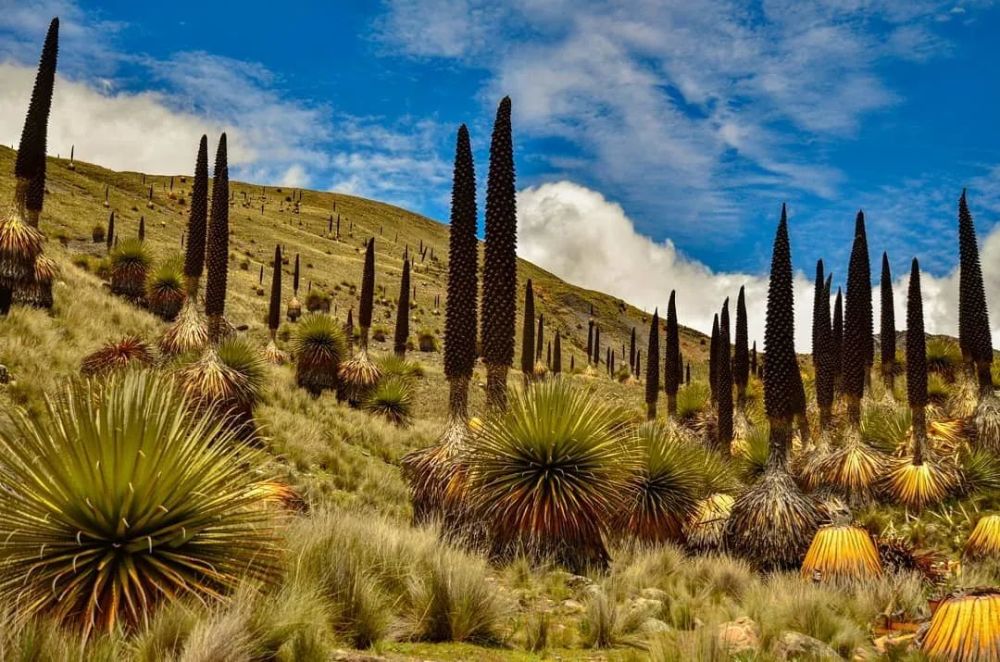 例如凤梨科最大的品种Puya Raimondii,可以高达 15 米。它也是吉尼斯世界纪录记载的世界上开花最慢的植物,可能需要 100 年以上时间。花开之日,多达 8000 株形似百合的白色花朵同时盛放,蔚为壮观。