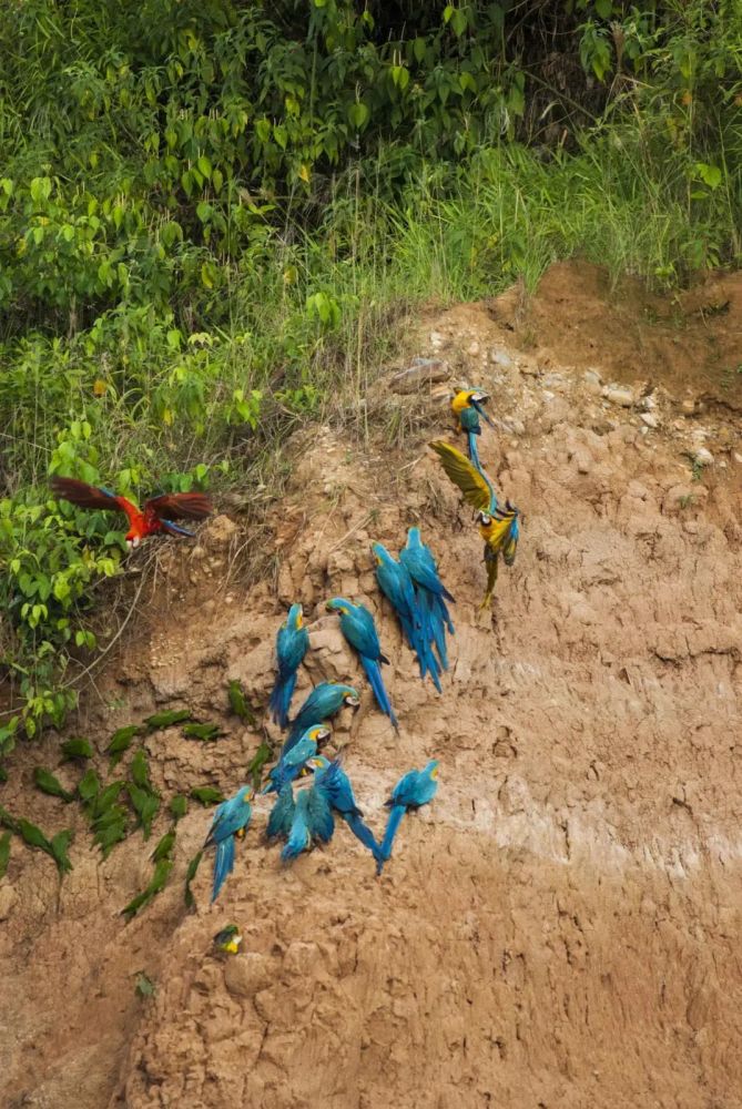 游览坦波帕塔保护区必做的事之一,就是观赏吃粘土的鸟。在河岸边被水流侵蚀的粘土墙上,每当黎明时分,各种鹦鹉蜂拥而来吃这里的粘土,从中获取盐分,有时数量会达到数百只。