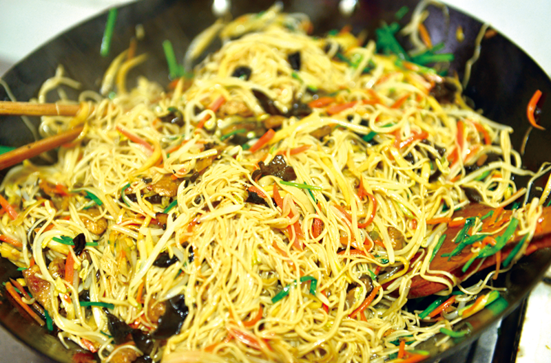 如煨麻糍、烙麻糍、炒麻糍……在临海,麻糍吃法很多,其中,炒麻糍是最受欢迎的。用菜刀边炒边把麻糍切块,配上肉丝、鸡蛋、绿豆芽、豆腐干丝、包心菜、韭菜翻炒,香气四溢,好吃又管饱。这时候你就得掂量掂量自己的肚子了~