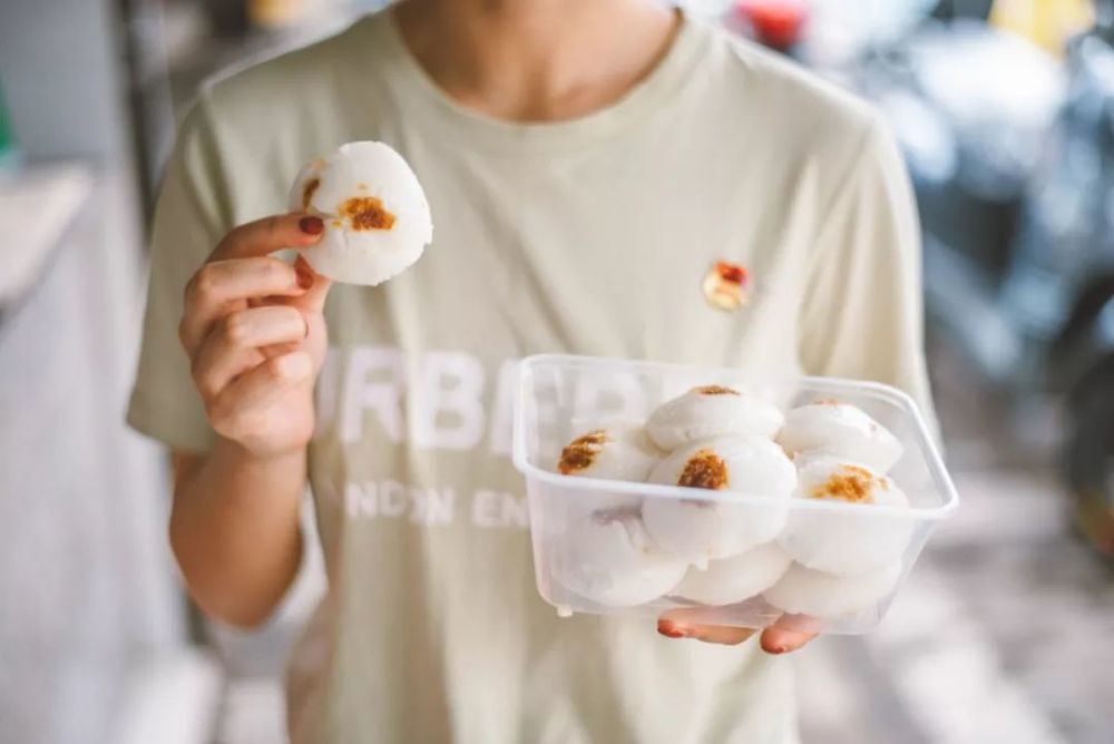 “台州人剽悍,性子急,包个肉汤圆都来不及封口。”说的就是炊圆了。白白胖胖的炊圆好似未封口的包子,肉香四溢,里面裹着瘦肉、豆腐干、虾皮、鲜笋等配料,Q弹却不黏牙,淋上酱油、醋、辣椒等,绝对能在妥帖抚慰你早起的倦怠。