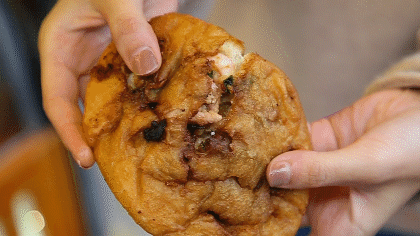 临海人从小吃到大的街头小吃里,锅块绝对是爱到心坎的经典早餐。很多外地人第一眼会以为是“煎包”,但两者不论是外形还是味道,都有大大的不同。热乎乎的锅块出锅,呼哧呼哧咬上一口,肉馅鲜嫩在口腔化开,汤汁四溢,再来一碗咸豆浆,简直人间绝配!