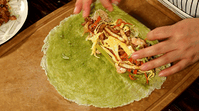 说是节庆食物,其实在临海的街头随处可见。麦油脂,又叫饺饼筒,做法可繁可简,全看自己的喜好。一张韧性十足的面皮包罗各种菜肴:笋丝、豆芽、蛋丝、豆腐干……各种味道在口中成了大杂烩,所产生的独特风味自然妙不可言,一个就管饱。