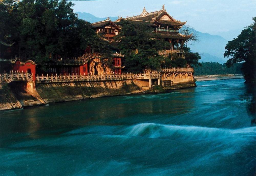 都江堰水利风景区被认定为四川旅游的又一个5A级别的旅游胜地,其核心落在成都平原城西处,是世界仅存的以保护自然为前提、充分利用自然资源求发展的生态工程。附近拥有秀丽景色,清明节前后是观景最佳时机,河水碧绿得像翡翠一样,加上岸边的绿荫葱葱,犹如一幅绿色画卷。还有不少水利工程及文物古迹如伏龙观、二王庙、安澜桥等安静地诉说着自己的故事与文化背景,安详地等待后人去发现与品味。小编有话说,山上树林里的秦堰楼可以观看整个景区哦!也是最佳地点哦!