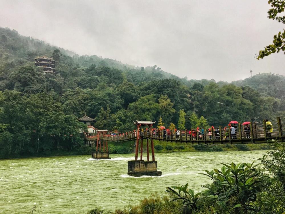 这里还有一座中国著名的古索桥:“安澜桥”,寓意为能够安然无恙地渡过水势汹汹的索桥。夫修桥来妻来助,故也叫“夫妻桥”。何先生夫妻二人初步建成桥的前身,后经过不断整修成了现在模样,留下历史的脚印,成为我国文物保护单位和五大古桥的之一。位置就在二王庙的前面,横跨在岷江之上。小编觉得,去到那里的小伙伴可以去尝试。由于是悬空索桥,晃荡很厉害,加上很长一段距离,可以互相搀扶走的更稳一点。桥面下面就是波涛汹涌的江水,特别遇到有人故意晃动的时候,水位高的时候还会拍打到脚面,甚是刺激!拍照留念时要特别注意哦!