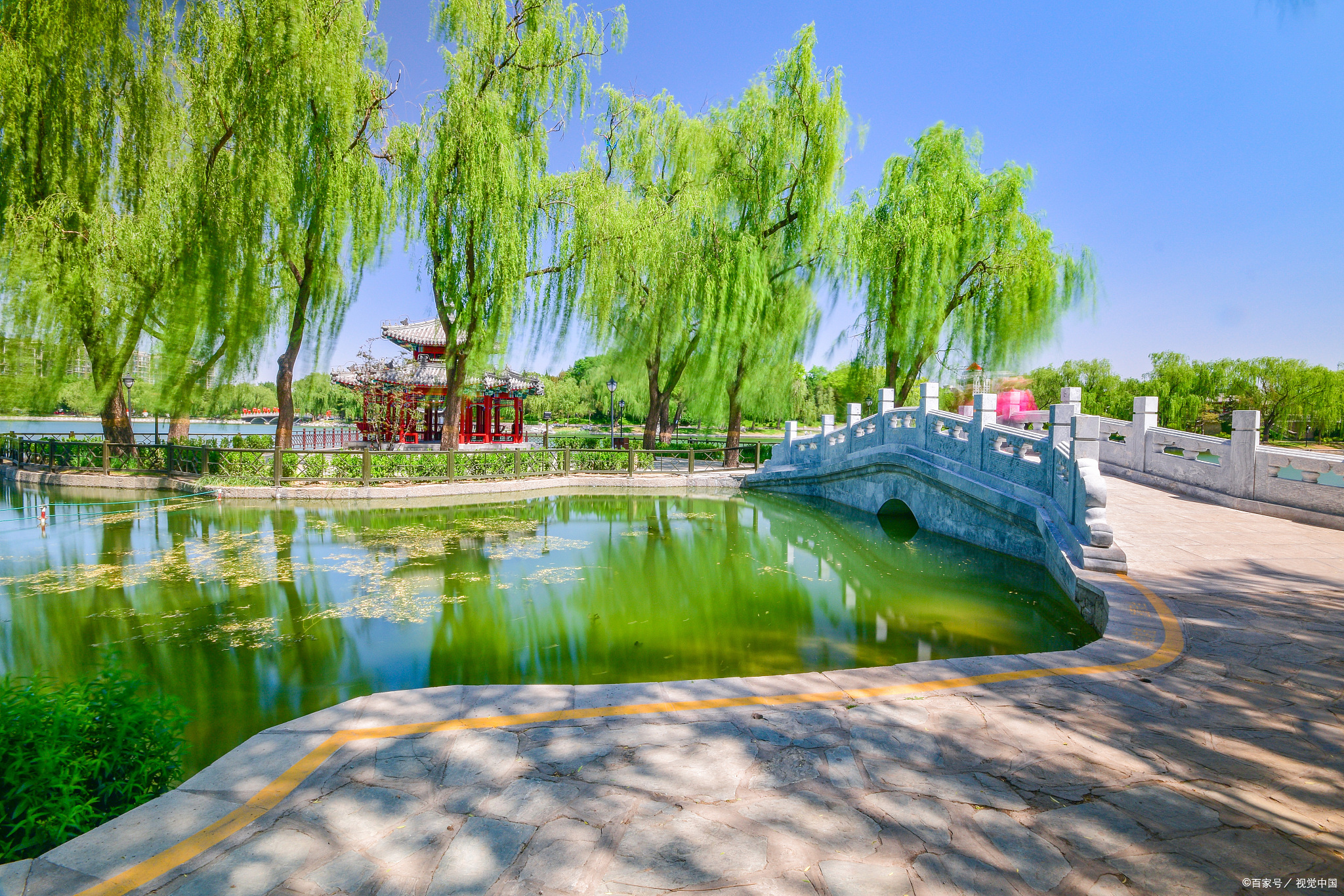 公园整体以亭为主题,追溯中国“亭”的发展历史及在园林景观中的地位,以陶然亭、醉翁亭、爱晚亭、牡丹亭等34座或古朴厚重、或灵巧轻盈的亭、廊、榭、阁按照1:1的比例复建于园内,栽植各类树木10万余株,成为目前国内以亭为主题的、占地面积最大的城市主题公园,为人们提供了一处遍赏中华名亭的独特游览胜地。也让这片北国之地有了精致的江南风韵。