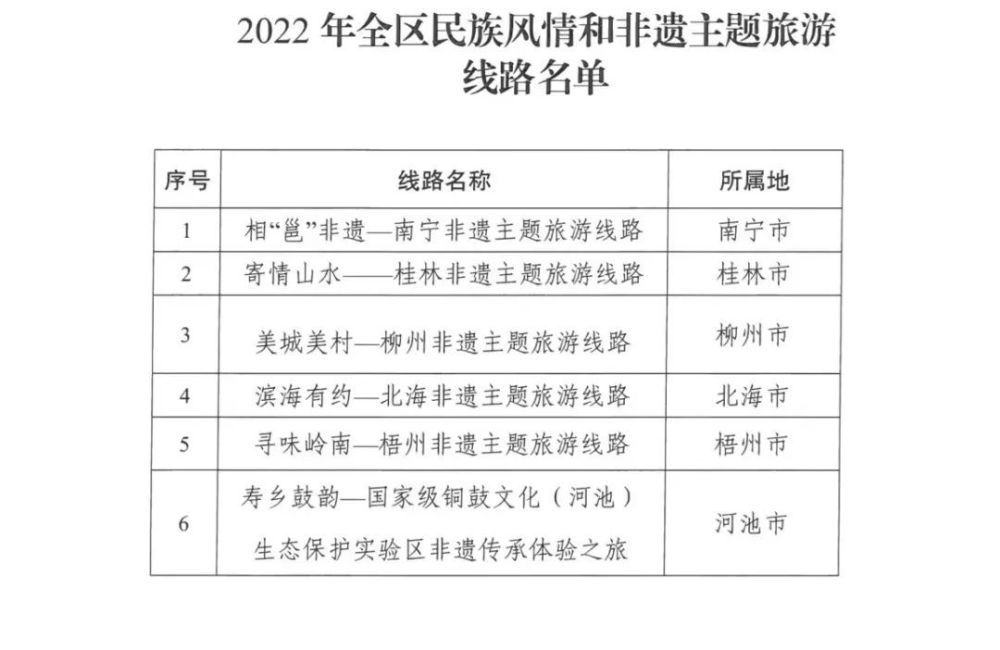 近日,广西壮族自治区文化和旅游厅公布了2022年全区民族风情和非遗主题旅游线路名单。其中,相“邕”非遗—南宁非遗主题旅游线路是获选线路之一。