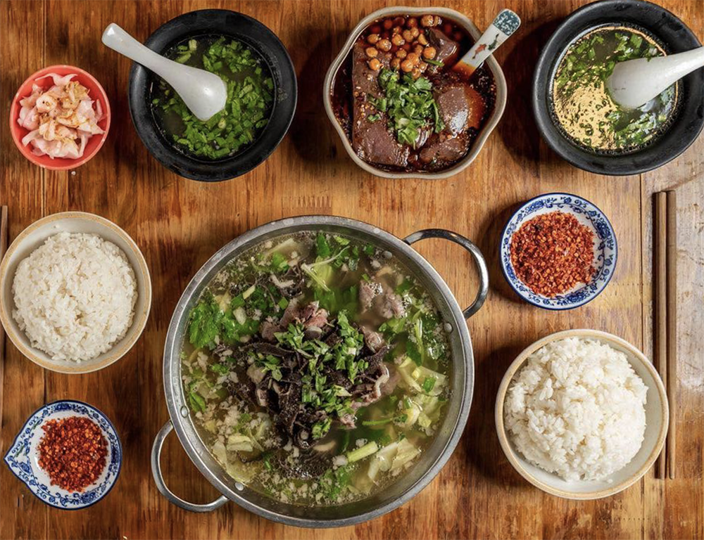 乐山豆腐脑用浓郁的牛骨汤做底,随后打入一个土鸡蛋,拌上切碎的酥肉、撒子、芹菜碎、炒黄豆、炸花生米、熟辣椒油等,撒上香菜和葱末,一碗用料扎实、味道咸辣的乐山豆腐脑就呈现在眼前了。