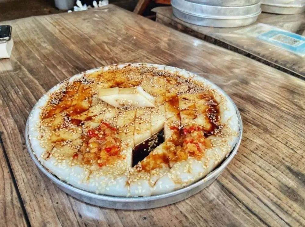 簸箕炊,一道看似简单,却又风味十足的传统小吃。用簸箕为盛具而著称,洁白的簸箕炊被小镰刀割成菱格状,然后放上芝麻与蒜蓉(即蒜鸡油)蘸着吃,入口细腻富有弹性,不过因蒜蓉有余味,所以也有不好此道者,故可单纯放花生油所煮成的香油,其风味旧。
