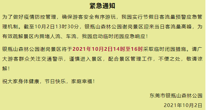惠州市植物园:10月1日起,暂时关停园区内的温室、科普馆和沙生馆等密闭场馆。