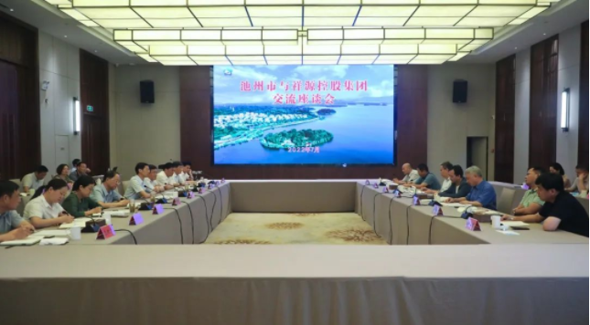 池州市委常委、市委统战部部长史孺牛,市委常委、贵池区委书记马胜利,市政府副市长曹霞,市政府秘书长盛国星、副秘书长徐洁芳,市发改委、自然资源规划局、文化和旅游局、生态环境局、水利局、林业局、投资控股集团,平天湖风景区管委会、九华山文旅集团等相关单位及部门领导和祥源控股集团副总裁、董事会秘书欧阳明,祥源控股集团副总裁何林海,祥源控股集团副总裁、交建股份董事长胡先宽,祥源控股集团副总裁、祥源生态董事长侯建东等参加座谈。