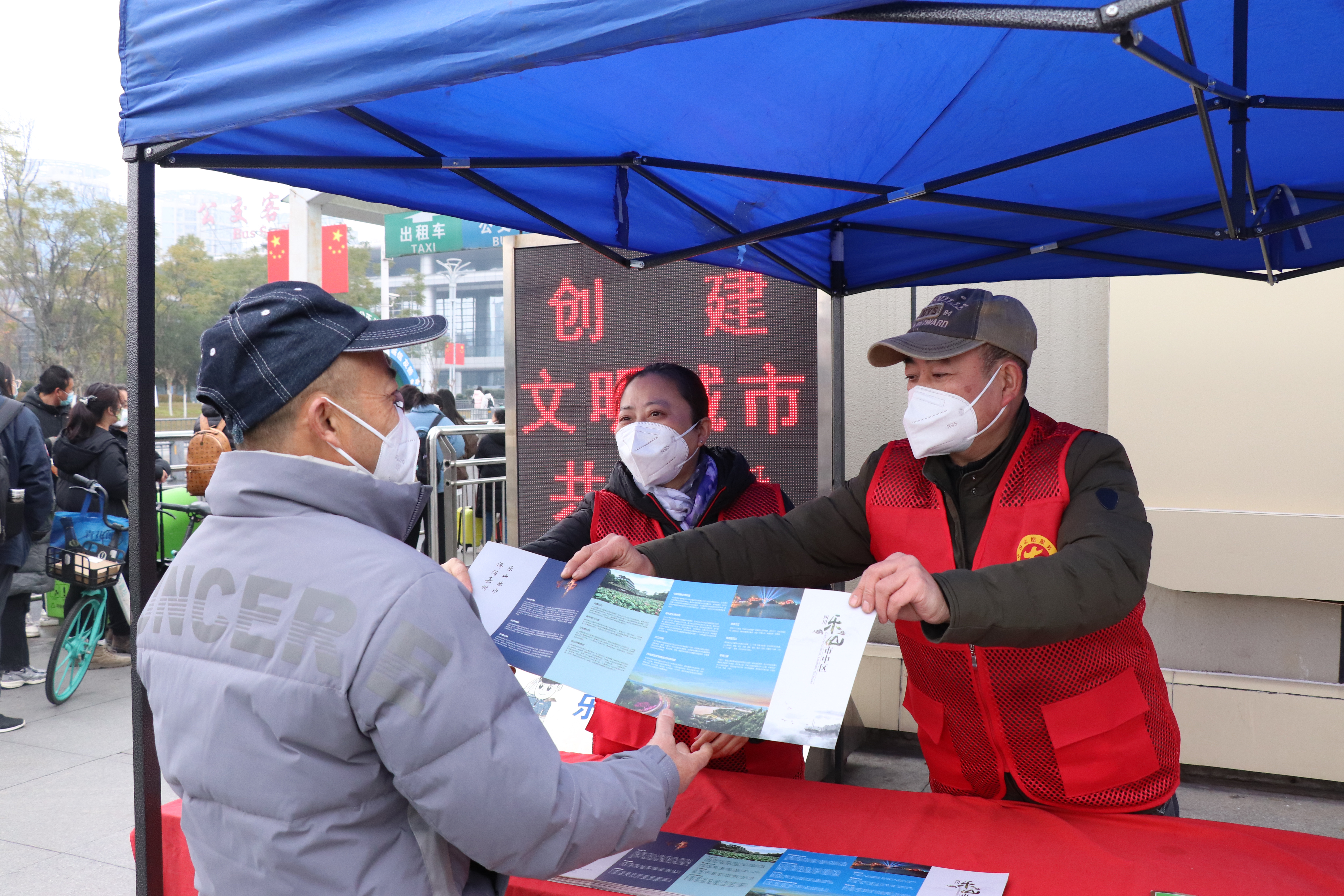 志愿者为游客提供旅游引导、咨询帮助等一站式服务。