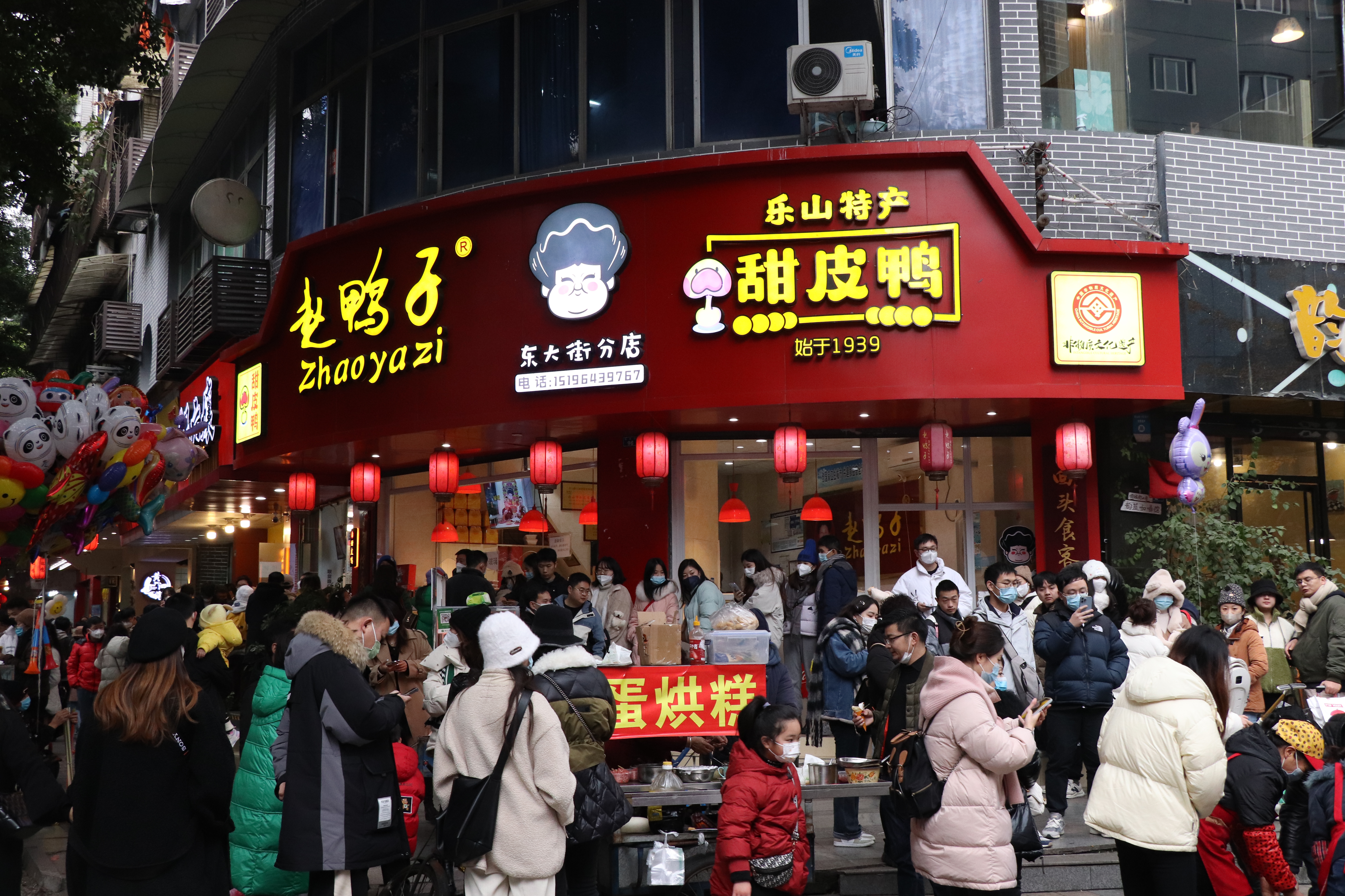 传统景区受到游客追捧以外,乐山市餐饮、住宿等消费也出现火爆场景。张公桥、嘉兴路、峨眉东门街等著名美食街区,车水马龙。黄鸡肉、九妹凤爪、冯四嬢等乐山特色美食“网红店”大排长龙。全市住宿、餐饮较平时大幅增长。