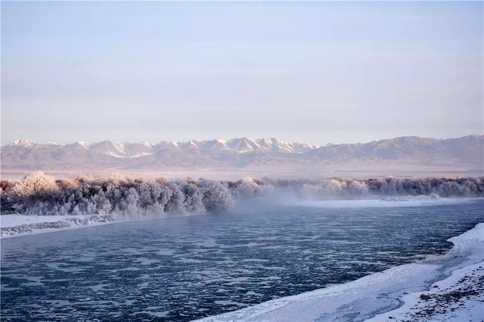 新疆昭苏特克斯河国家湿地公园的雾凇景观。新华社发