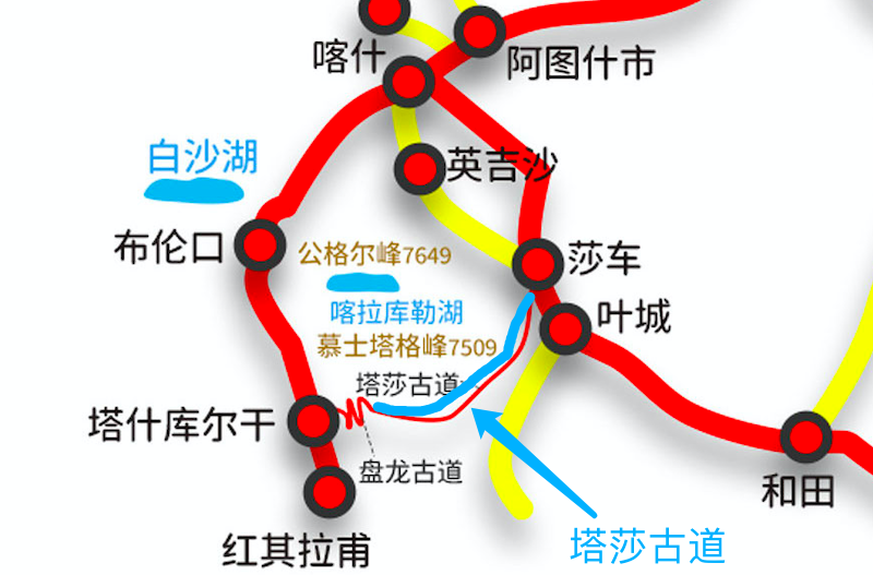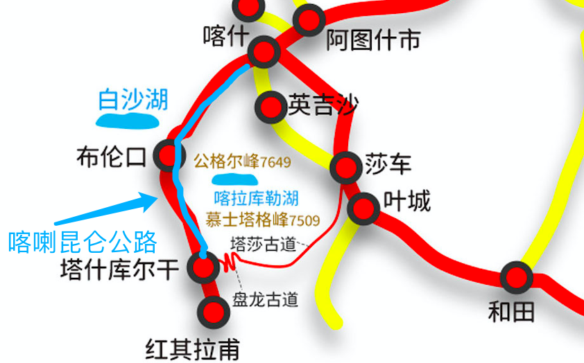 起点喀什,终点塔什库尔干,自驾需6小时。一路沿喀喇昆明山脉蜿蜒,直抵帕米尔高原腹地,是一条跨国公路,又名“中巴友谊公路”,有着“全世界最险峻公路”的美誉,沿途雪山峭壁巍峨嶙峋,雄壮风姿惊艳瑰美。