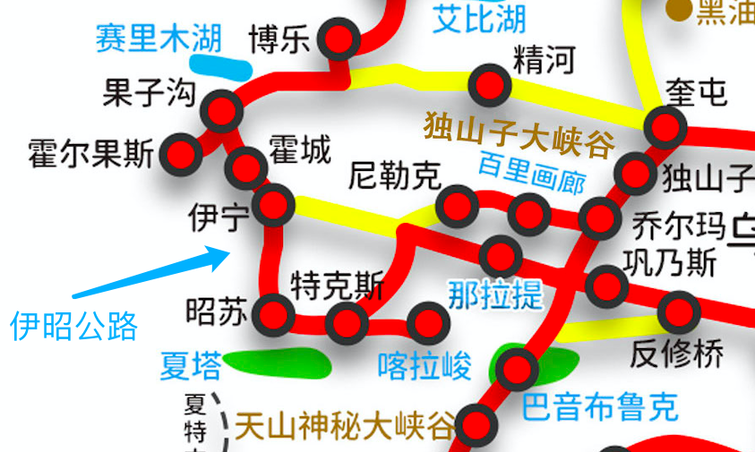 起点伊宁县,终点昭苏,自驾仅需3小时。穿越乌孙山最高峰,风景不亚于独库公路,但却更加险峻、雄伟、壮观。伊昭公路比独库公路开放时间短,仅允许7座以下车辆通行(7座车辆不能通行)。
