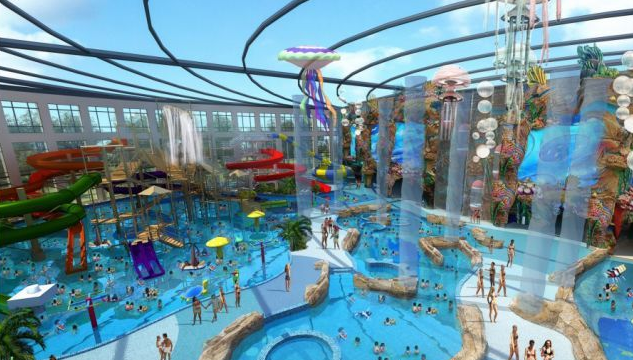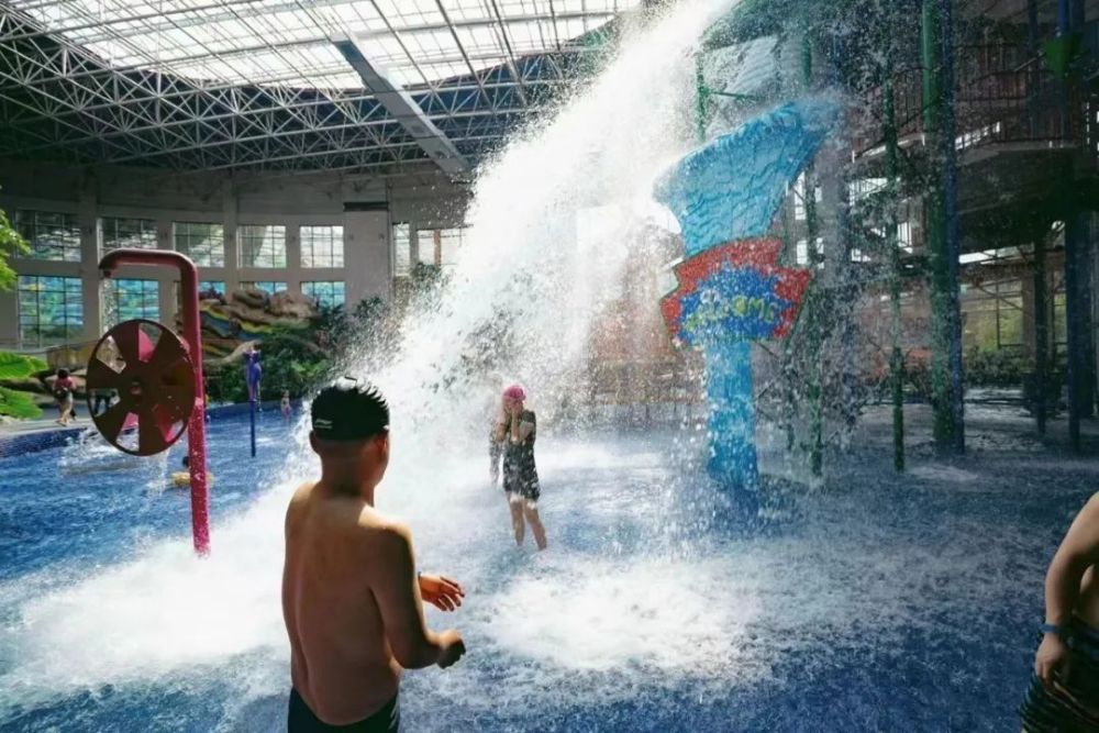 随后携带上更换衣物,步入温泉区,室内有恒温水世界,孩子们超级喜欢,海浪池、皮划艇滑梯、太空盆滑梯、大型水寨,亲子互动欢天喜地。