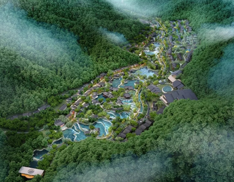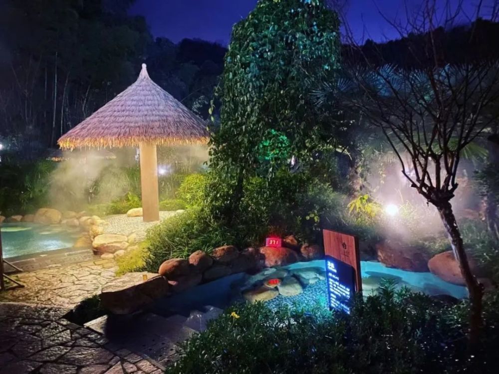 室外露天温泉区有中式、日式、欧式温泉泡池36个,环境清雅简洁。