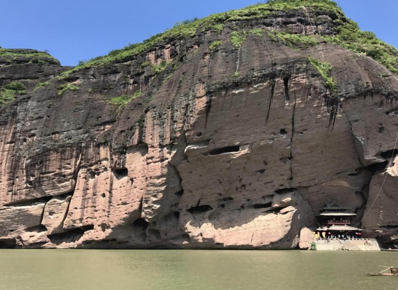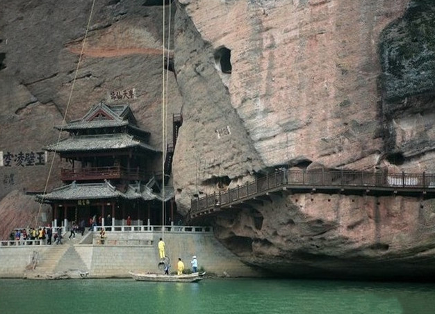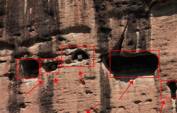 未解之谜~千年悬棺。乘舟游至山下,就能看到,在它的崖壁上,存在着大大小小共计202座悬棺,它们星星点点地分布在龙虎山的山洞之中。此时可以欣赏到精彩而又生动的悬棺演出,据说看完会“升官发财”。