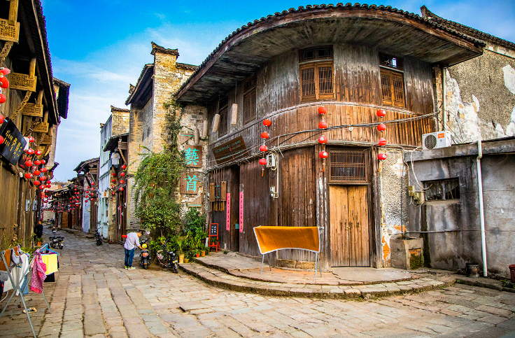 镇内小河蜿蜓迥转,一座座青石桥横跨两岸,增添了小镇的水乡情调。沿江码头的碑石上,字迹历历可见,令人回想起当年“货聚八闽川广,语杂两浙淮杨,舟楫夜泊,绕岸灯辉”之盛。