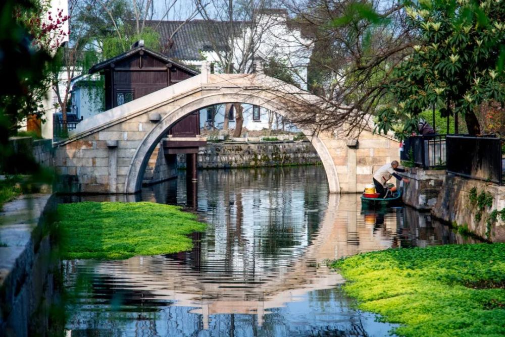 在南浔古镇徜徉,抬头就是错落有致的马头墙,低头可见水面上有乌篷船划过。