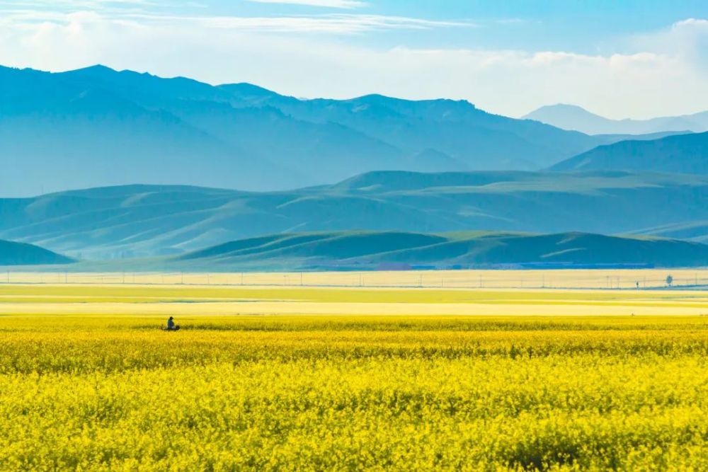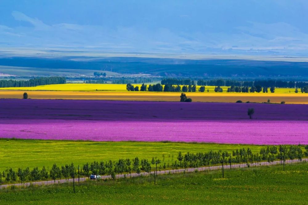 骄阳似火的盛夏,昭苏万亩香紫苏和油菜花竞相怒放,形成了一片壮观的黄紫相间的花海,令人心旷神怡。