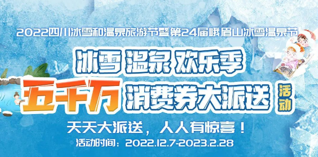 借力省十四运会热度,开展“全省体育非遗展演”“后备箱露营节”等丰富多彩的文体旅活动,带动文旅经济持续升温;开展“冬游乐山消费季”活动,对旅行社接团实施“人头”奖补,开展“‘一元购’冬游乐山大放送”“百万职工游巴蜀”“非遗直播购物节”等活动,发布峨眉山冰雪奇缘森林温泉欢乐之旅、小凉山彝族年民俗风情体验之旅等10条冬游乐山精品线路,推出景区免票开放、酒店民宿旅游折扣等优惠“礼包”,为助推全市文旅经济高位回升再添“一把火”;以2022四川省冬季旅游启动仪式暨2022四川冰雪和温泉旅游节为契机,峨眉山发布“冰雪温泉欢乐季 五千万消费券大派送”优惠政策,面向全国游客派送总额5000万的文旅消费券,全面释放消费潜力,助力文旅市场回暖。