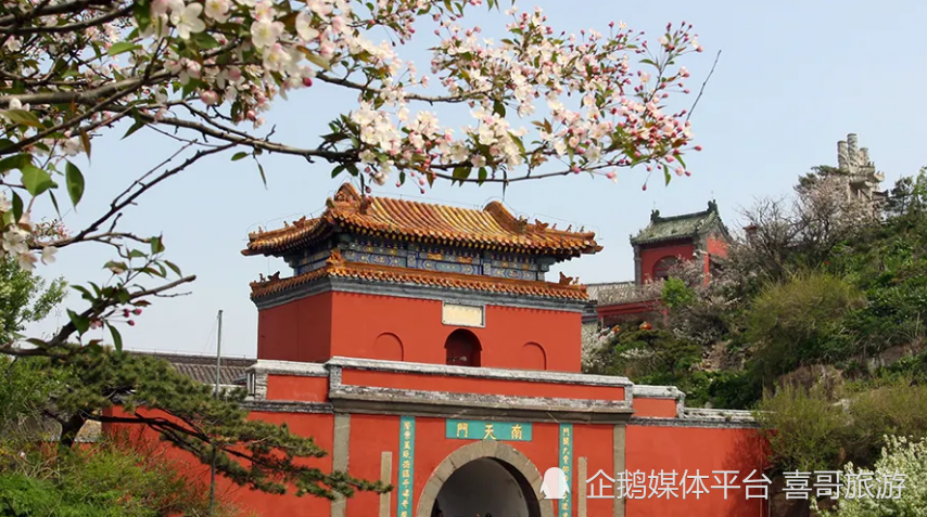 山东泰山南天门,在山东泰安市泰山上十八盘之尽处,旧称三天门、天门关,海拔1460米,山于此为最危耸。泰山南天门建在飞龙岩与翔凤岭之间的低坳处,双峰夹峙,仿佛天门自开。元中统五年(1264年)布山道士张志纯创建。门为阁楼式建筑,石砌拱形门洞,额题“南天门”。红墙点缀,黄色琉璃瓦盖顶,气势雄伟。门侧有楹联曰“门辟九霄仰步三天胜迹;阶崇万级俯临千嶂奇观”。