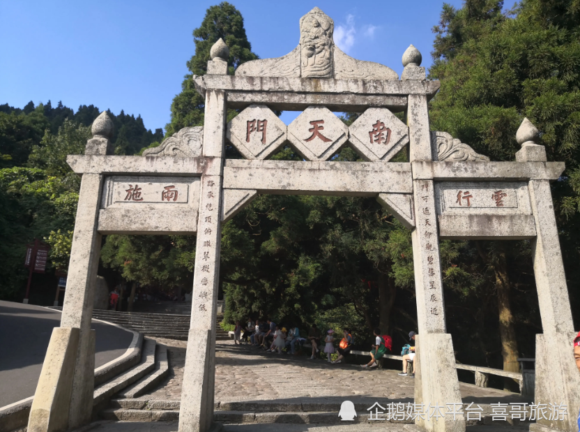 元代杜仁杰曾撰刻《天门铭》记录其事,铭日:“泰山天门无室宇尚矣。布山张炼师为之经构,累岁乃成,可谓破天荒者也。”刻石现仍在天门西侧的石室内,保存完好。《泰山小史》也赞南天门“在十八盘上,高插霄汉,两山对峙,万初中鸟道百折,危级千盘。松声云气,迷离耳目衣袂之间。俯视下界则山伏若丘,河环如绷,天地空阔,无可名状。”南天门是泰山的骄傲。南天门以上围绕着泰山极顶的区域,被称作岱顶景区,面积约1.6平方公里。