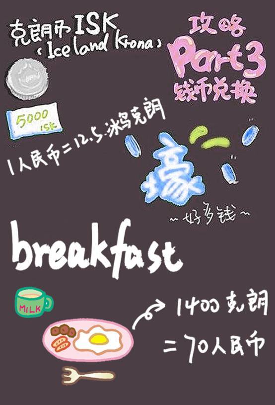 「冰岛吃早餐要多少钱?」早餐要收1400isk=70人民币,提前预订可便宜200,不过这里三文鱼便宜,折25人民币1袋。