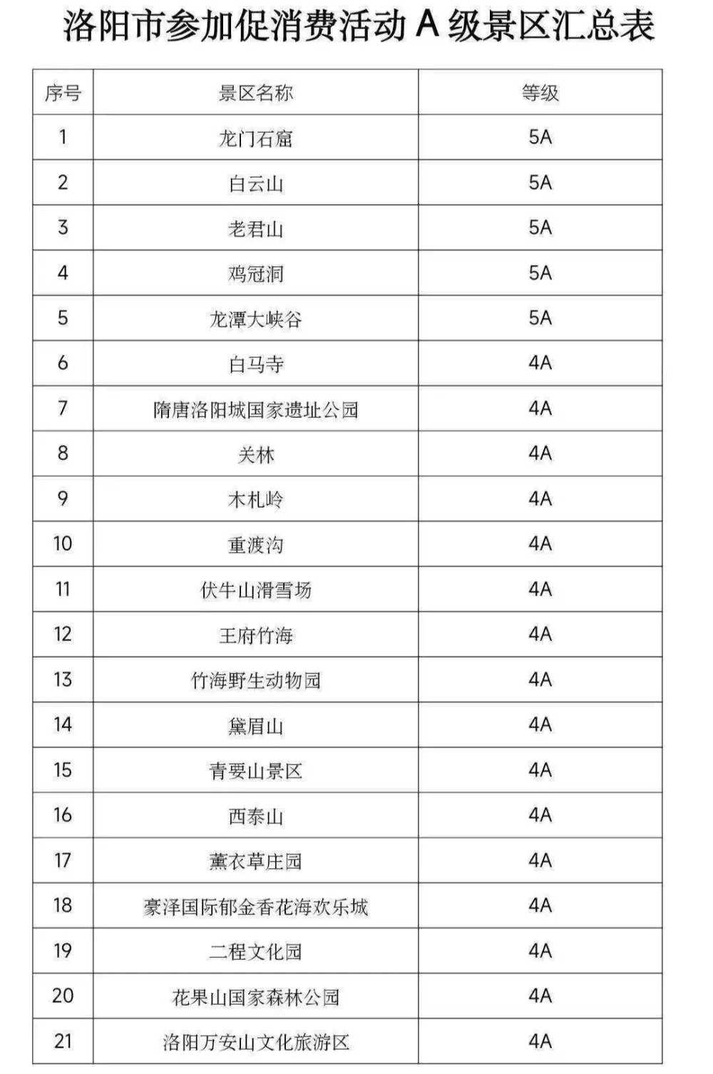 1月1日至1月31日,洛阳投入1亿元免费门票向全国游客开展52家A级景区免费领活动,每天发放免费门票4万张。限量免门票景区包括了龙门石窟、白马寺、老君山等,其中5A景区5家、4A景区22家、3A景区20家。全国游客可通过微信公众号“洛阳旅游”“享游洛阳官方”进入“门票预约”活动专区选择景区预约。