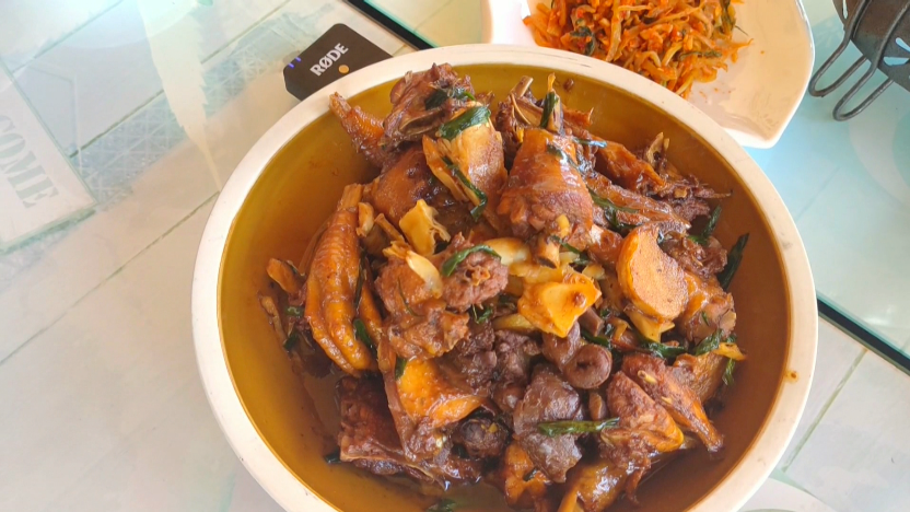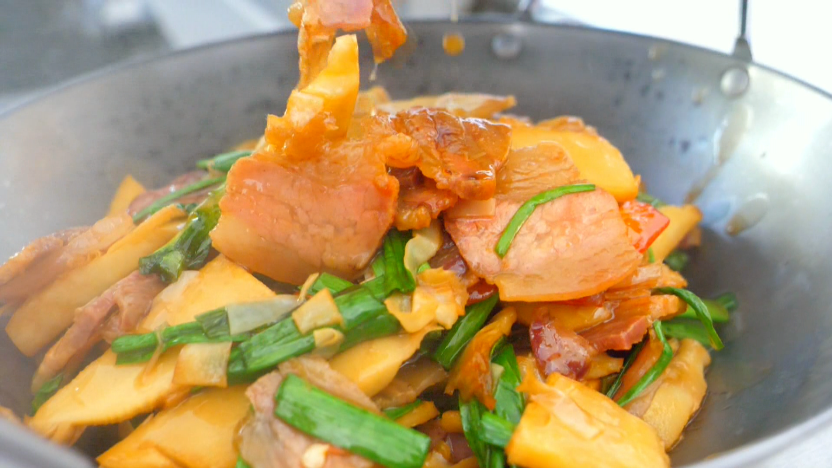 冬笋烧肉、冬笋烧土鸡,是泾县冬日特有美食。翻炒中肉类与冬笋相互入味,整盘菜油而不腻、清脆爽口。