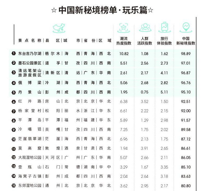 可以参考马蜂窝去年发布的“中国新秘境”榜单: