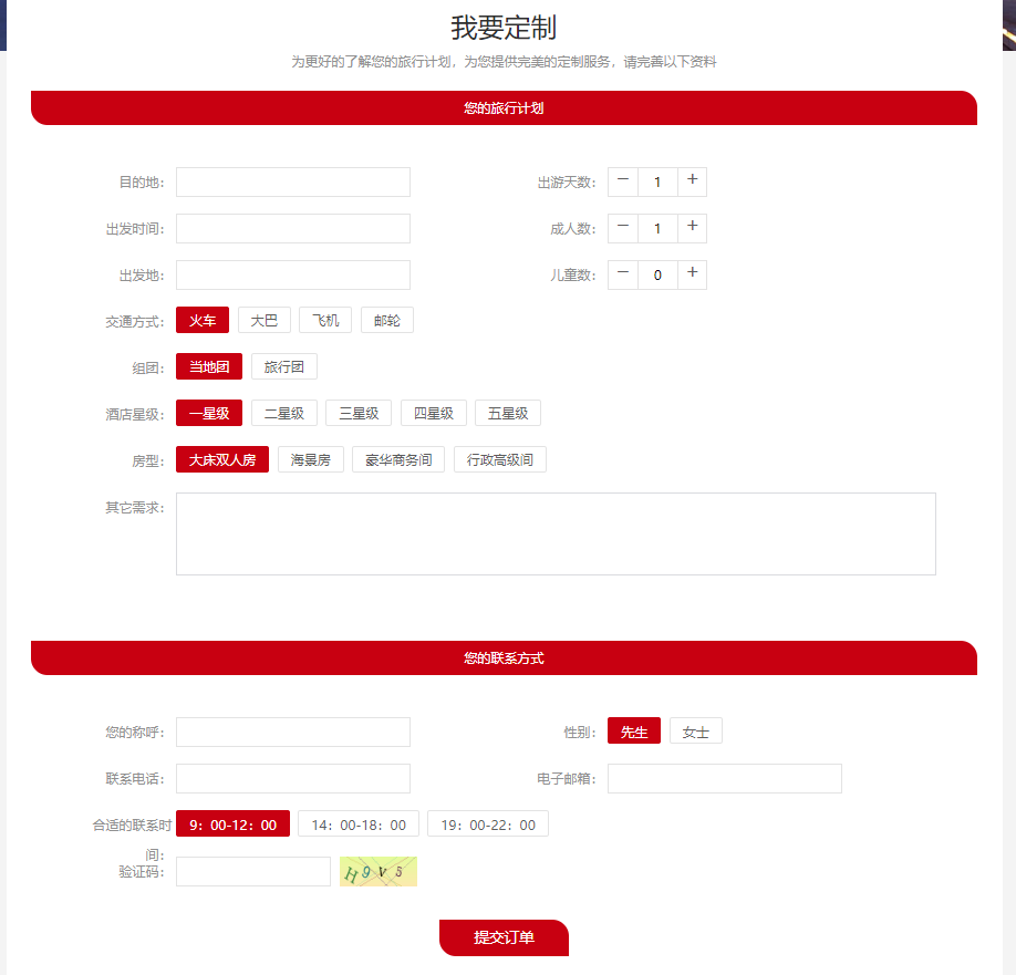 1. 私人定制,专门页面供游客在线提交需求;