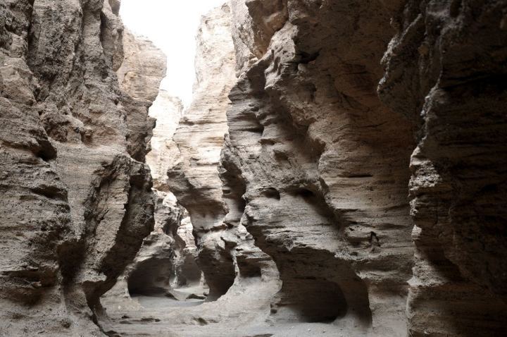罗布泊雅丹大峡谷库鲁塔格山西麓的山前冲积地带, 凸显出寒武纪、侏罗纪的“年轮”和信息。大峡谷,峡谷长4.9公里,宽2—40米,深10—30米,谷口海拔1017米,谷尾897米,上下落差120米。峡谷的横截面多呈“A”字形,上窄下阔。峡谷两侧分布10余条侧谷,较大的有7条,峡谷幽深莫测,仿佛就是地下宫殿。