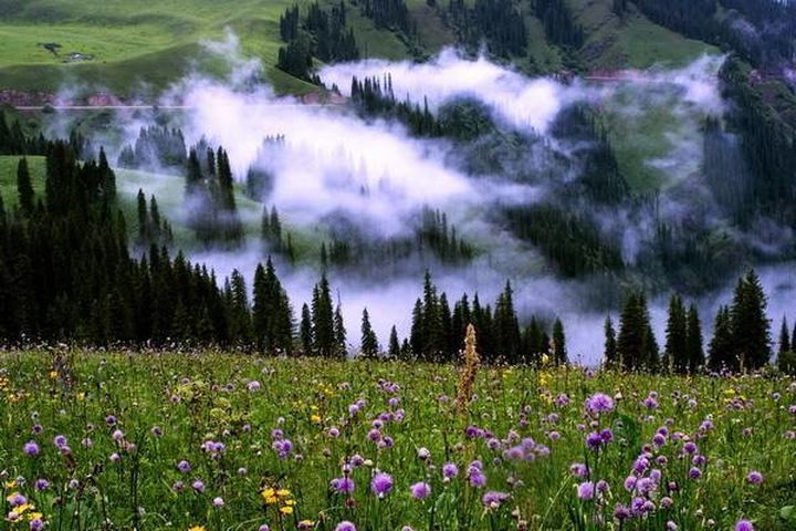 巩乃斯蒙古语意为“太阳坡“,位于巴音郭楞州的和静县内,在巩乃斯河的上游,草原地域辽阔,沟谷众多,是新疆著名的草原,它还是新疆细毛羊的故乡和伊犁天马的重要产地。巩乃斯,草原类型复杂多样,四季有充足的水草资源。一年四季景色美丽,每年6-9月是草原的黄金季节,草原上鲜花盛开,在蓝天映衬下草原尤显华丽而气势恢宏,是良好的避暑和旅游胜地。