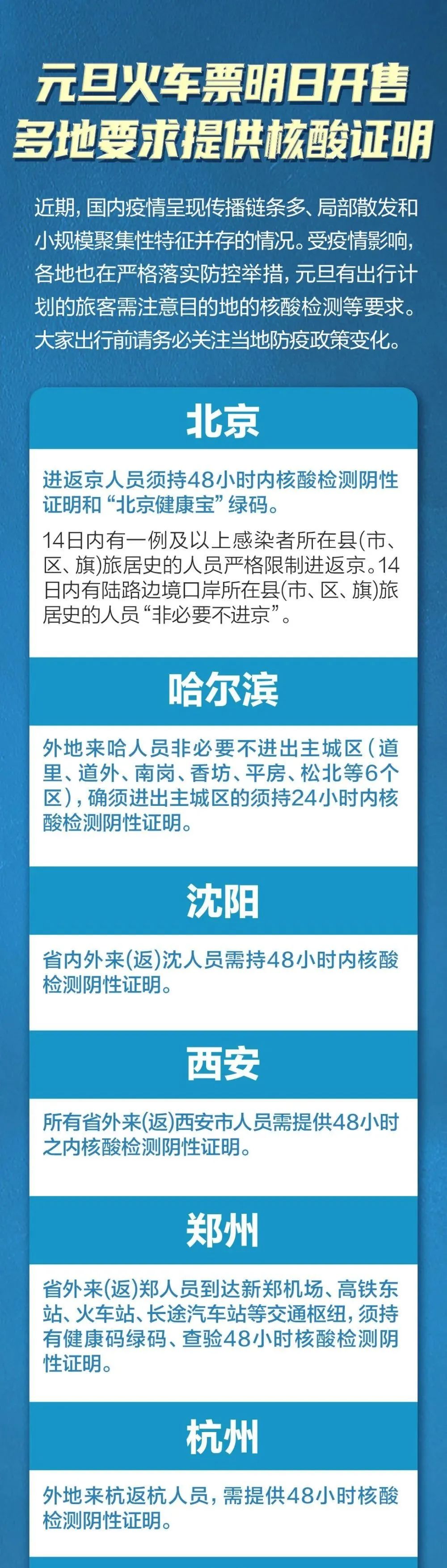 近期,国内疫情呈现传播链条多、局部散发和小规模聚集性特征并存的情况。受疫情影响,各地也在严格防控举措,元旦有出行计划的旅客需注意核酸检测等要求。