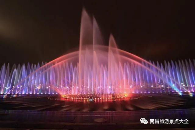 秋水广场位于赣江之滨,和滕王阁隔江相望。白天这里的游人并不多,到了晚上,广场上闪烁的霓虹、散步的情侣、嬉闹的孩子让这里多了几分温馨和浪漫。音乐喷泉一般每天晚上有两场,每场大概25分钟,水柱能达到100多米,很是壮观。广场旁边还有一条小吃街和一个游乐场,在这里一边欣赏音乐喷泉,一边看对岸滕王阁美景,可以说是南昌休闲生活中浓墨重彩的一笔。