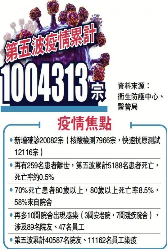 前不久的2月28日,是香港的“封关两周年”。截止本月19日,香港卫生署卫生防护中心传染病处主任张竹君表示,由第五波疫情起,已累计1004313宗确诊个案,合计有5188宗死亡个案,男女比例约3:2,染病死亡率为0.5%。