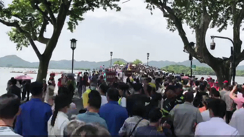 五一假期首日,杭州天气晴朗,气温适宜,大量游客涌入杭州西湖景区,景区开启“人从众”模式,无论是在景区内的游船码头,还是旅游厕所前,都排起了长队,“西湖断桥五一假期变人桥”的话题登上微博热搜。