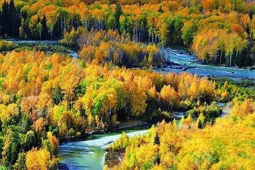 这时的西北第一村白哈巴的5号界碑,喀纳斯神仙湾、月亮湾、卧龙湾等地,到处都是层次丰富的彩林、雪杉、河流、森林,就象在油画里行走。