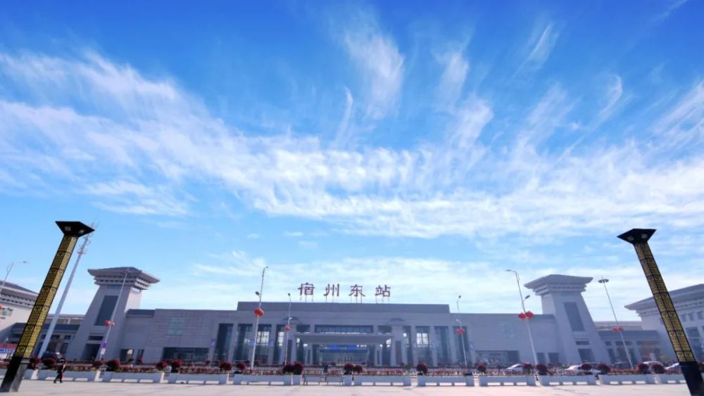 【宿州东站,位于宿州市埇桥区蒿沟乡、宿马现代产业园区内,距离宿州市区27公里、距离灵璧县城20公里,全天经停超过100趟高速动车,京沪线、京福线、合福线沿线城市来宿观光旅游非常方便。】