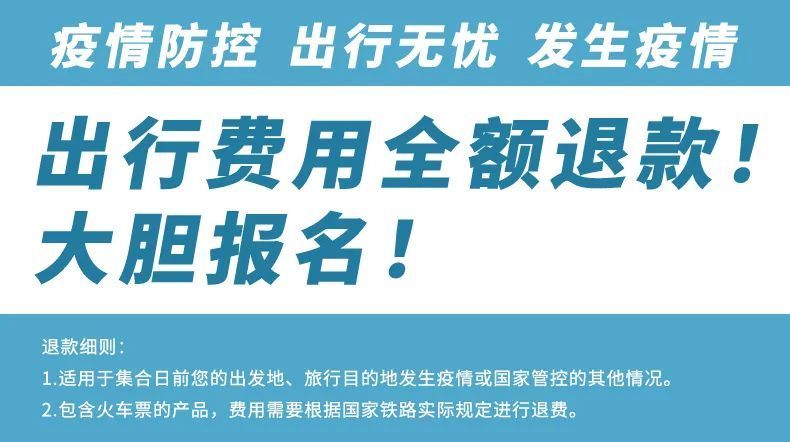 6.出游过程中,如遇不可抗力因素造成景点未能正常游玩,领队经与客人协商后可根据实际情况取消或更换该景点;或由导游在现场按旅游社结算价退还费用,退费无法以景区挂牌价为准,敬请谅解。