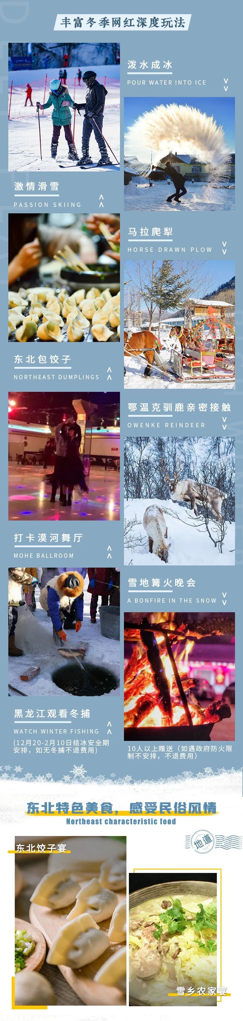 4、黑龙江冰面冬捕(12月20-2月10日结冰安全期安排,赠送项目,如无冬捕不退费用);