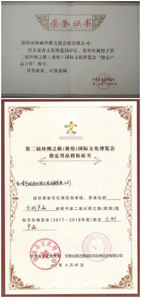 敦煌IP授权中心拥有50余件注册商标(其中莫高窟文字注册商标10件),100多项版权,以及飞天、美神、药神、九色鹿(敦煌瑞兽)等18个敦煌国漫形象。我们的莫高窟品牌和敦煌IP权属清楚,文化原型资源丰富。我们开发的文创产品为丝绸之路(敦煌)国际文化博览会指定产品。我们设计的敦煌之恋入选中国文创地图并荣膺“2021年度十佳地域吉祥物IP”桂冠!我们拥有丝绸之路、敦煌、莫高窟、敦煌国漫四大超级IP系列,还拥有敦煌新媒体和敦煌网商平台。建成敦煌莫高窟(数字)艺术馆和丝绸之路世界文化遗产(敦煌)设计基地,运营敦煌国潮时尚秀场,推出敦煌IP授权全生态链系统。我们已给国内曹县汉服、华帝股份、世贸地产、酷粉珠宝、萌扬文化、广东五叶神、上海大漠绿洲等数十家企业授权,许可他们在各自产品、包装及宣发物料上使用敦煌IP和敦煌元素,通过这些敦煌系列产品的热销,使得数以亿计的老百姓都能领略到敦煌之美。我们打造飞天小姐姐IP形象为虚拟偶像和敦煌文化国际传播大使,打造丝路通哥IP形象为一带一路虚拟主播和选品官。我们在香港依法注册成立了丝绸之路品牌研究院、丝绸之路国际商业联合会、敦煌艺术学会和敦煌莫高窟艺术馆,组建了专业的品牌管理机构。还在日本和韩国都申请注册“敦煌”和“莫高窟”商标,同时在香港建成了人类敦煌网,将以香港为窗口,依托我们自有的数字丝路元宇宙平台,向海外宣传一带一路敦煌文化,给海外优秀企业授权,进一步扩大敦煌IP莫高窟品牌在全球的朋友圈和影响力!