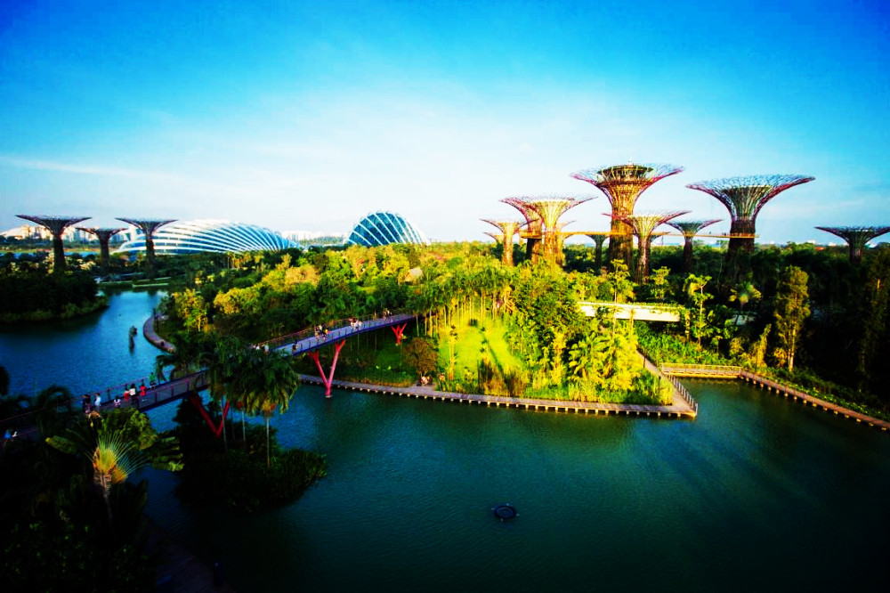 1.海湾花园,它是新加坡的标志性景观,由滨海南花园、滨海东花园和滨海中花园三个风格各异的水岸花园连接而成。它的设计灵感源自胡姬花,形似新加坡国花卓锦万黛兰。花园正中央的几棵巨型擎天大树您一定不会错过,这些树形的垂直花园巍然耸立,介于 9 至 16 层楼高。漫步于两棵擎天大树之间的空中走道,鸟瞰花园全景。夜幕降临,灯光秀在巨树丛林之间打造出五光十色的奇幻夜空,令人目眩神迷。