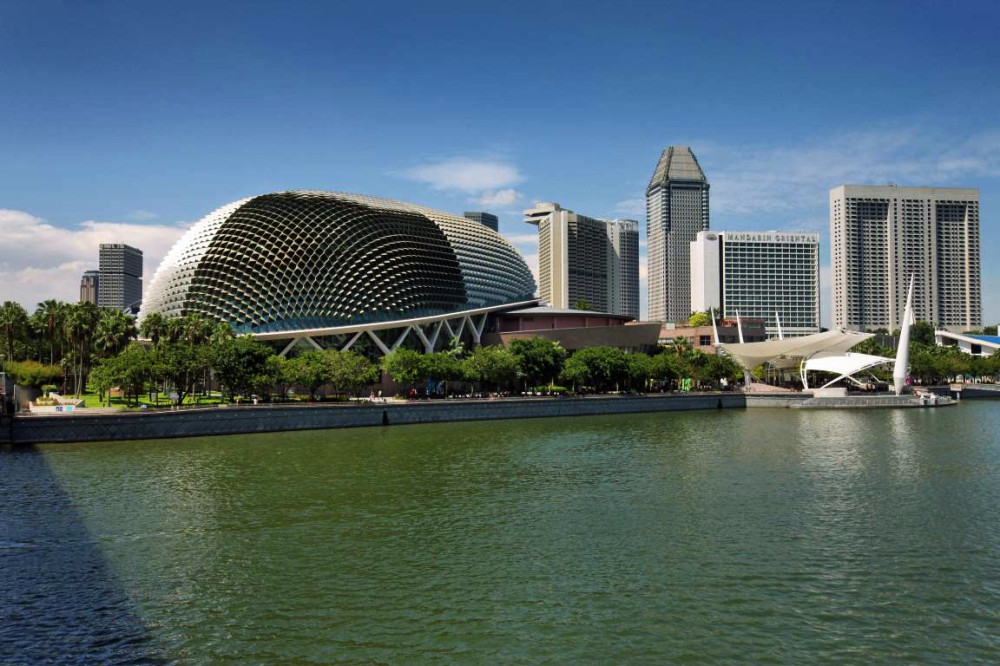 9.滨海湾剧院,在滨海湾的旁边人们可以看到一座外形类似榴莲的建筑,这就是新加坡著名的滨海湾剧院。滨海湾剧院中不仅有剧院、音乐厅、演奏厅,还有图书馆、餐厅、购物中心。