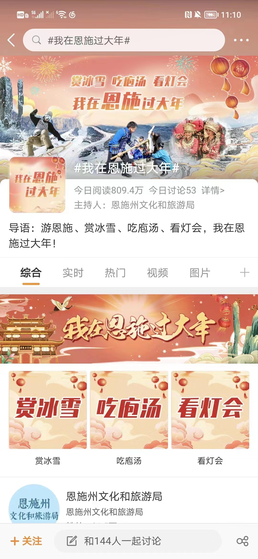 截至1月14日,#我在恩施过大年#话题阅读量达3680万,#湖北恩施的限定年味#阅读量达1137.8万,#玩转恩施快乐出发#话题阅读量443.9万,话题阅读总量5261.7万,话题热度还在持续上升中。