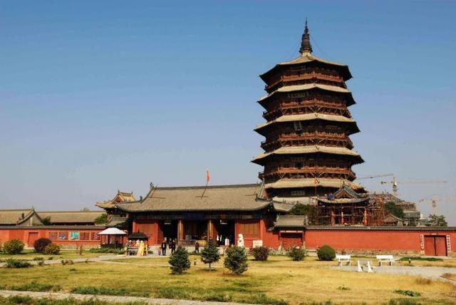 应县木塔高67.31米,塔内供奉着两颗释迦牟尼佛牙舍利,是中国现存最高最古的一座木构塔式建筑,也是“世界三大奇塔之一”。
