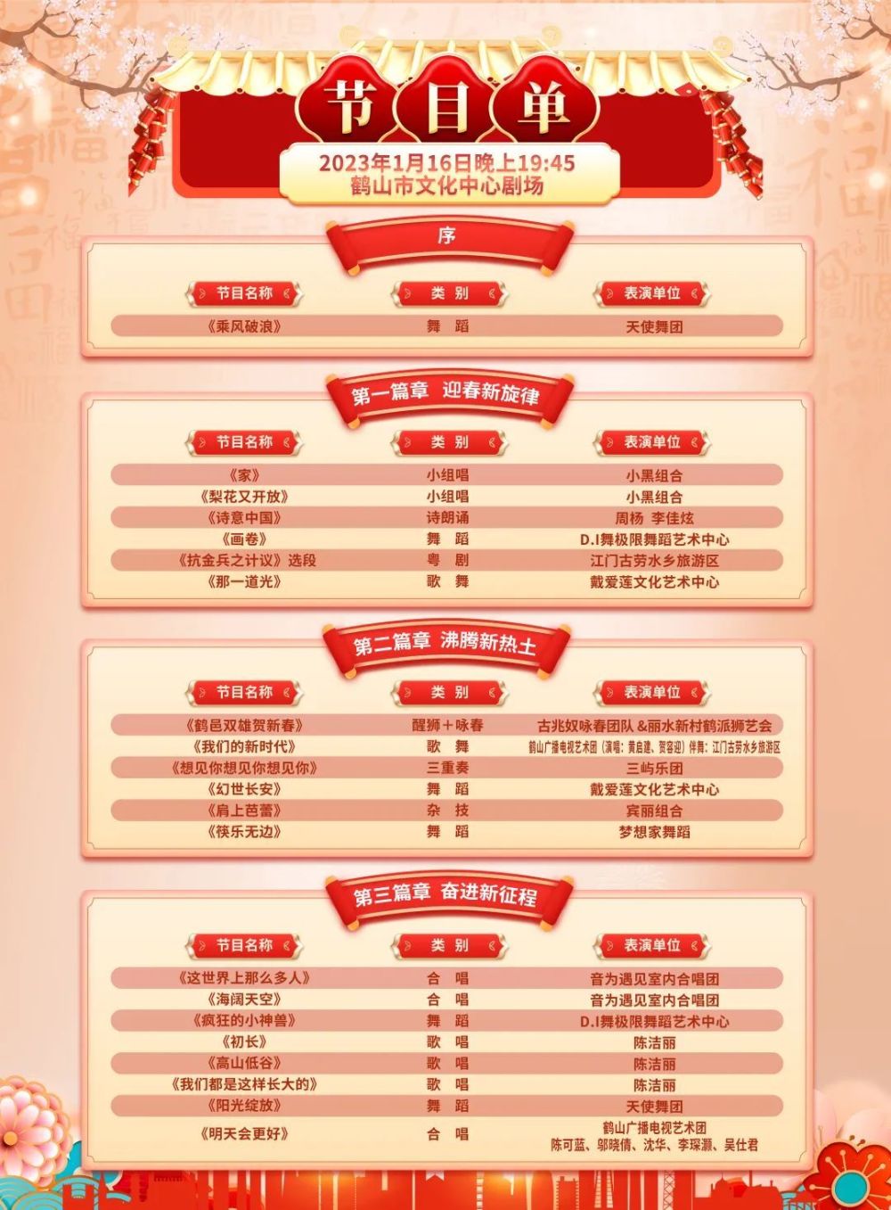 踔厉奋进新时代 ——鹤山电台35周年台庆暨春节文艺汇演内容精彩纷呈,包括鹤山狮艺咏春、传统粤剧、新派舞蹈合唱、重唱、杂技诗朗诵等极具本土特色的丰富节目内容,千万不要错过!